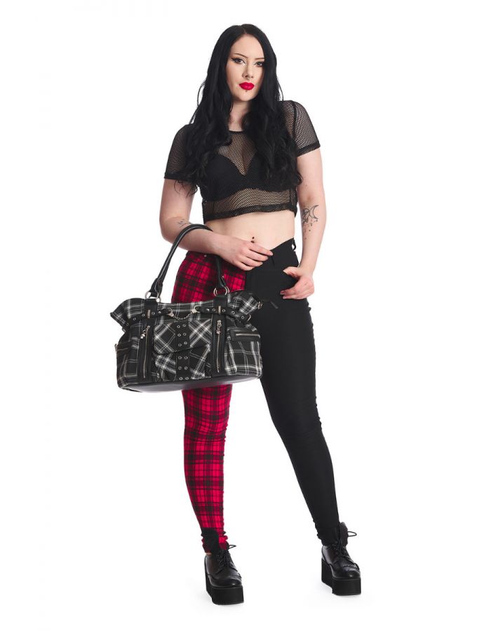 Banned Classic Black And White Tartan Punk Rise up Handcuff Handbag