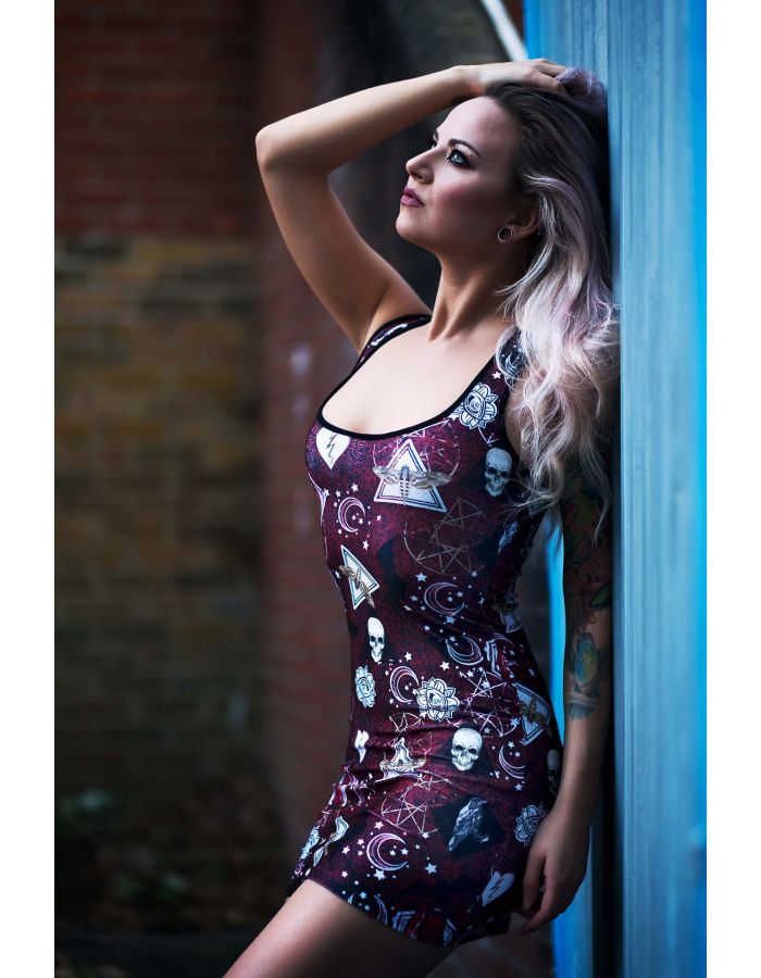 Bats Moon Stars Pentagram Broken Heart Coffin Print Long Vest Top