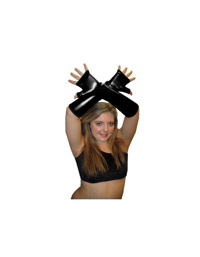 Black Metallic Shiny PVC Wetlook Gloves Rave Cyber