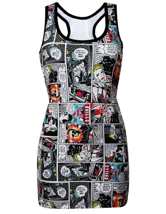 Comic Strip Book Retro Classic Print Long Vest Tank Top
