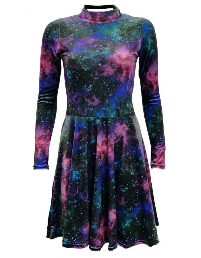 Galaxy Space Universe Stars Cosmos Planets Printed Velvet Velour High Neck Dress