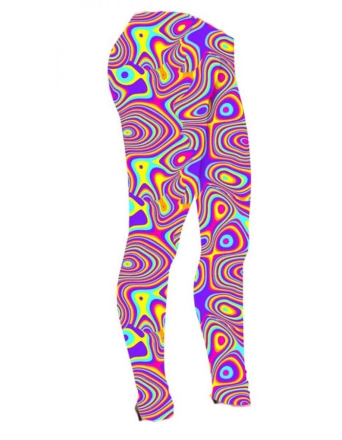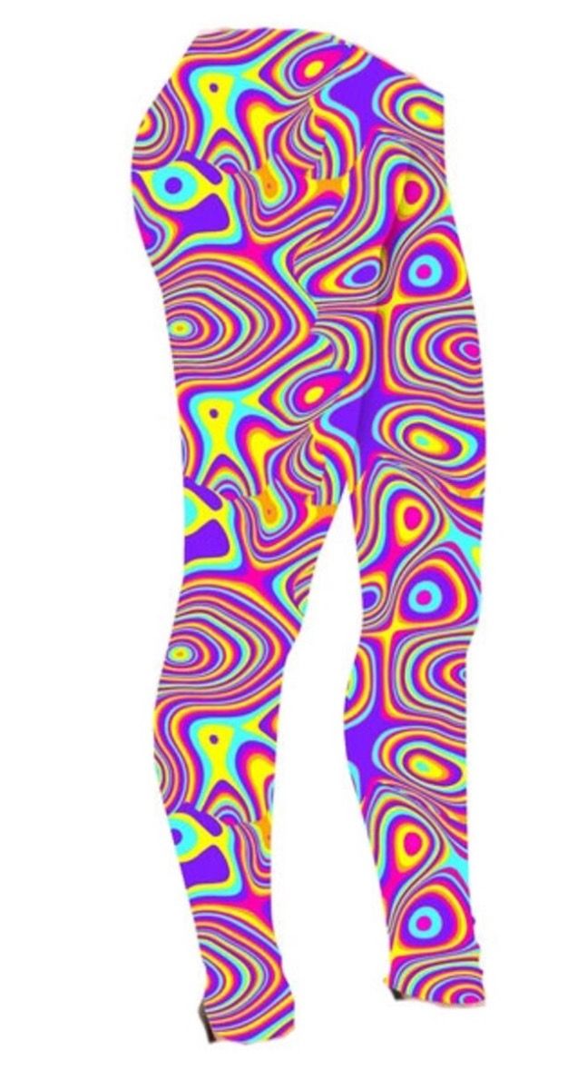 Girls Groovy Psychedelic Galaxy Marble Swirls Holographic Geometric Printed Leggings