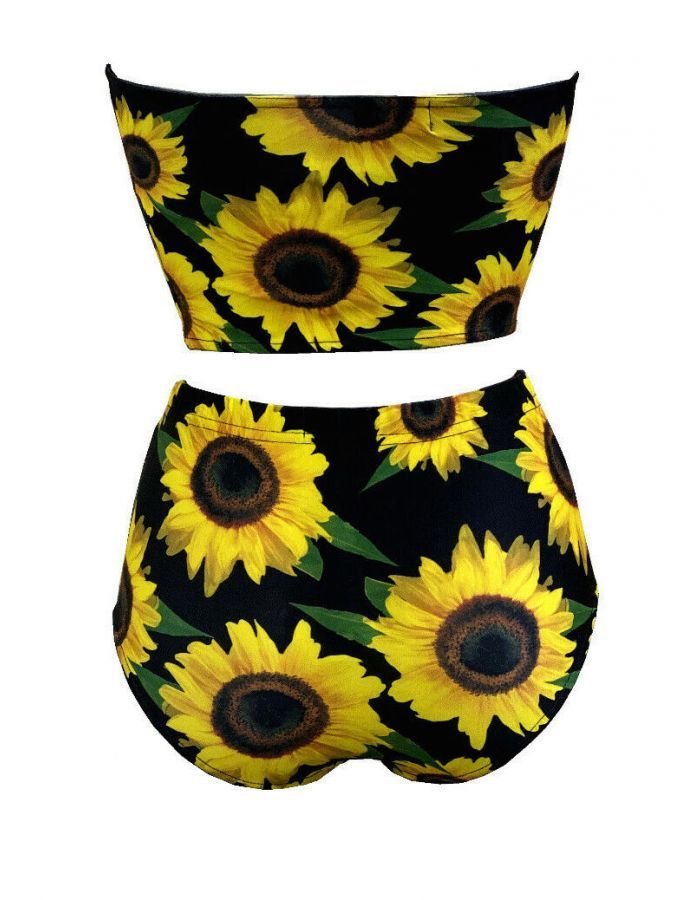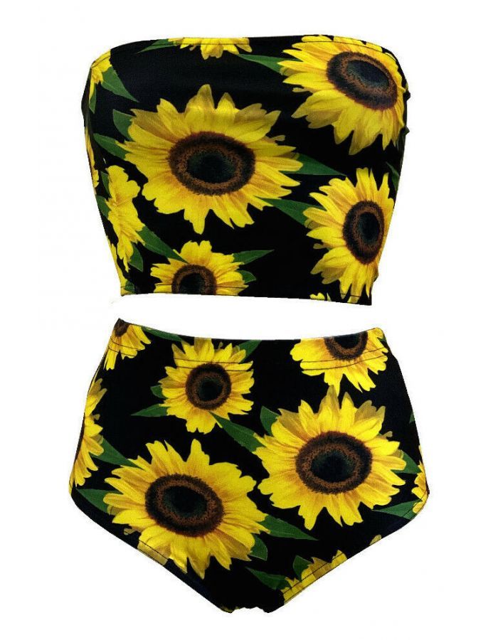 Gorgeous Sunflower Sunset Floral All Over Printed Crop Bandeau Top High Waist Bikini Pants Coord Set