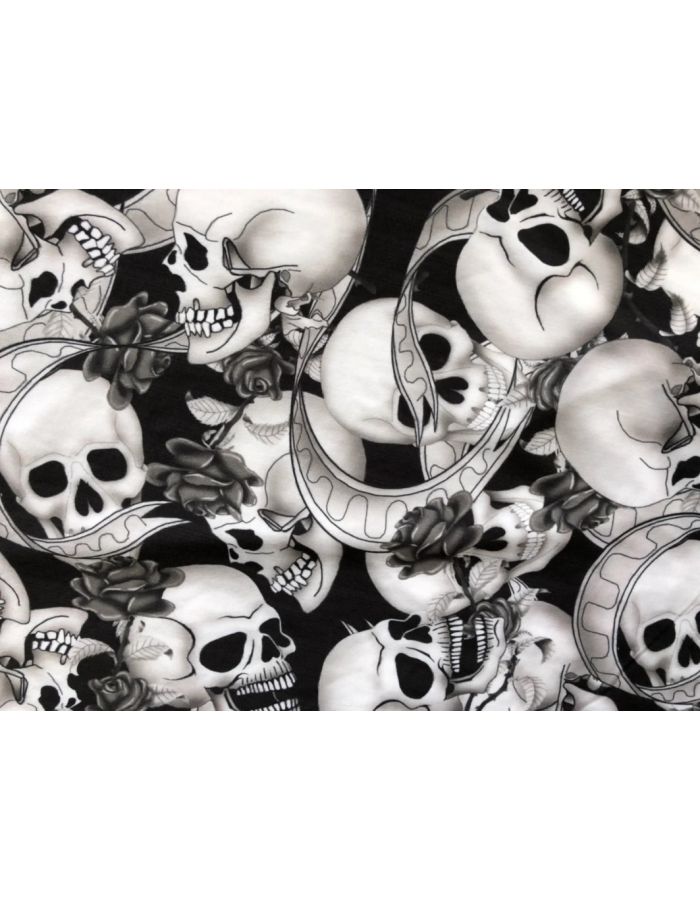 Gothic Floral Skull Roses Banner Pattern Stretch Spandex Fabric Stunning Dressmaking Dancewear Leotards Leggings Goth Punk Emo