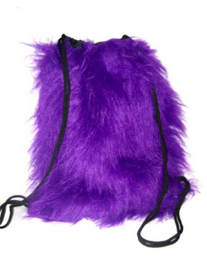 Purple Reflective Long Fluffy Furry Fabric Backpack Hand Bag