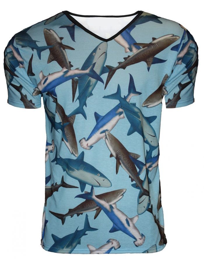Shark Sea Life Men's V-Neck T-Shirt Top Tee