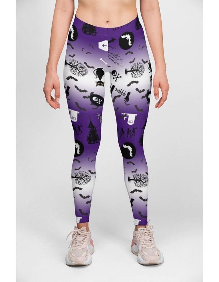 Amazing Detailing On This Stunning legging, Bats, Moon, Haunted House, Grim Reaper, Coffin, Pentagram With Spooky Cat, Check. You Couldn't Ask For More, Right?