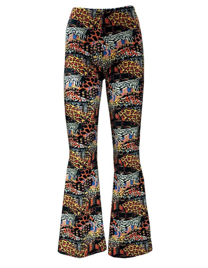 Traditional African Wild Animal Velvet Velour Flare Bell Leggings