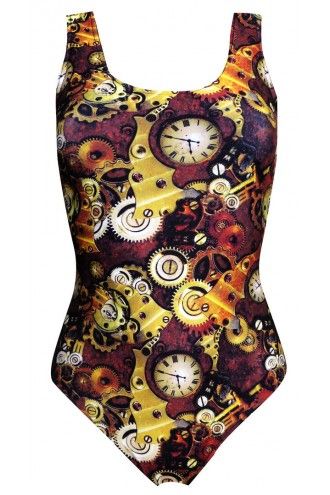 Traditional Steampunk Machine Mechanical Cogs Clocks All Over Print Swimsuit Bodysuit Costume
