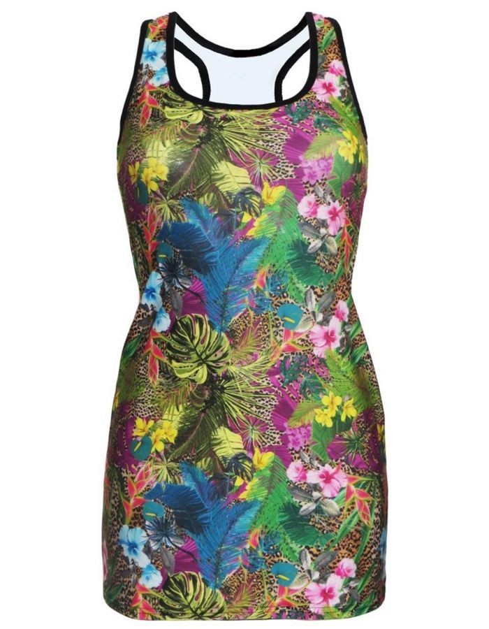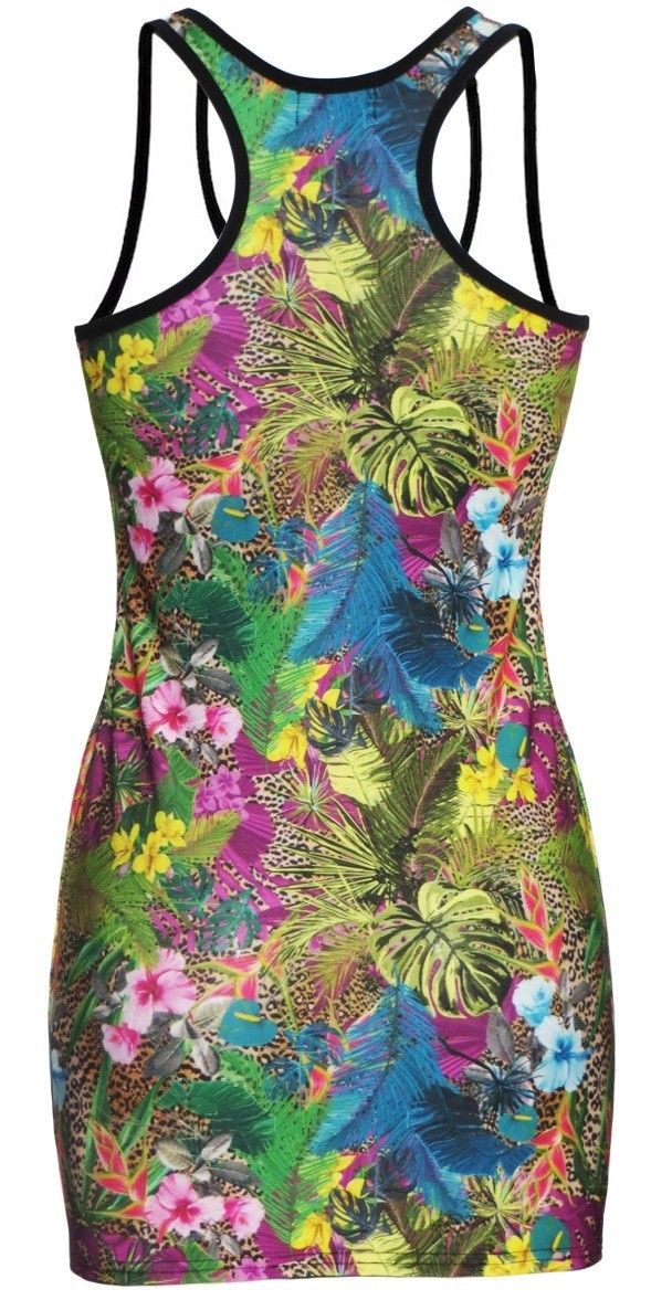 Tropical Floral Flowers Leaves Leopard Skin Animal Print Long Vest Top