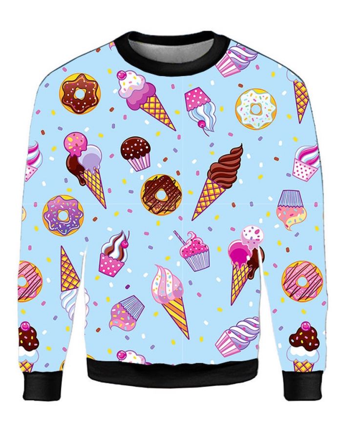 Unisex Cute Cupcakes Ice Cream Donuts Printed Crew Neck Sweatshirt Jumper