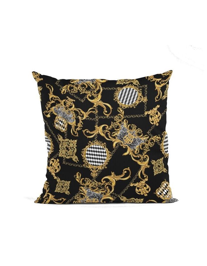Vintage Gold Baroque Damask Paisley Monochrome Harlequin Stretch Polyester Cushion Covers